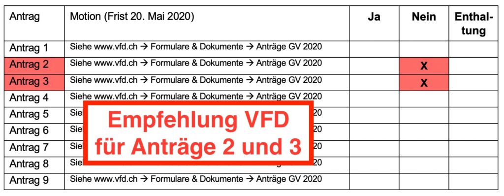 Der Vorstand empfiehlt den Antrag abzulehnen (Antrag 3: Nein stimmen)